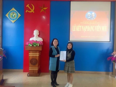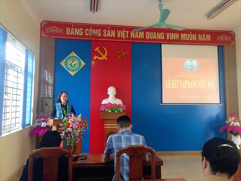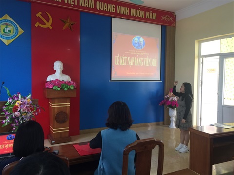 Về dự và chỉ đạo Lễ kết nạp Đảng viên có đ/c Nguyễn Thị Kim Mai– Bí thư chi bộ- Hiệu trưởng nhà trường. Tại buổi lễ đ/c Nguyễn Thị Kim Mai – Bí thư chi bộ đã trao quyết định và giao nhiệm vụ cho đảng viên mới Hà và phân công đảng viên tiếp tục theo dõi giúp đỡ đồng chí Hà trở thành đảng viên chính thức.