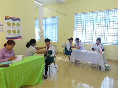 Thực hiện kế hoạch công tác giáo dục thể chất, hoạt động thể thao, công tác Y tế và công tác học sinh trường học năm học 2020-2021, ngày 12/11/2020 trường THCS Nguyễn Huệ phối hợp với Trạm Y tế xã Nguyễn Huệ tổ chức khám sức khỏe định kỳ cho học sinh trong toàn trường năm học 2020- 2021.